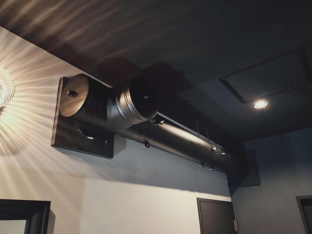 一般的には90度L管を入れる箇所ですが、メンテナンス性を重視してエックス管を採用しました。キャップを外すだけで2方向の煙突掃除ができるため利便性が高いと思います。