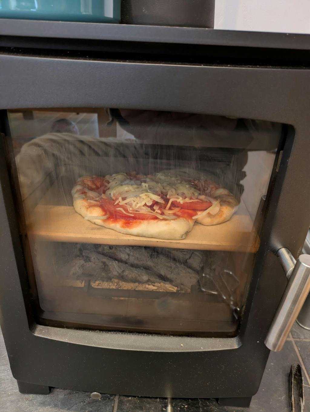 鉄筋で五徳を作りピザを焼いてみました。カリカリでとても美味しく出来上がりました。