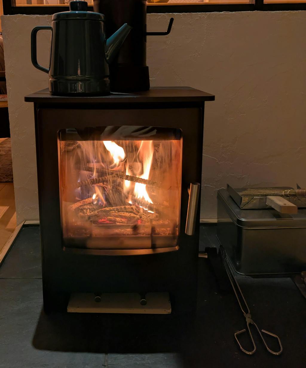 15坪ですが氷点下18℃の1700mで薪ストーブ単独で暖かく過ごしています。