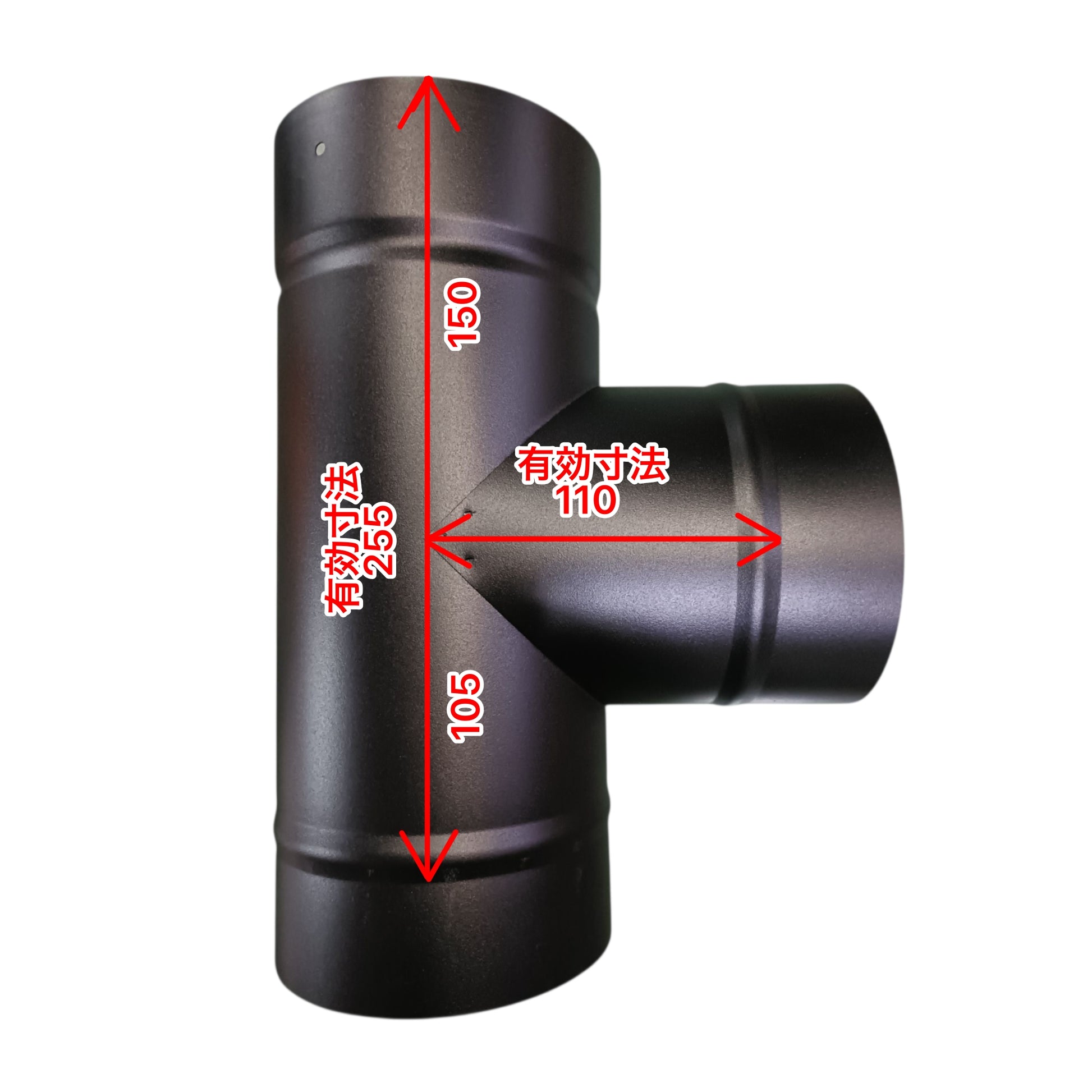 ○一重煙突 T管(ティー管)径125ミリ キャップ付き 耐熱600℃塗装