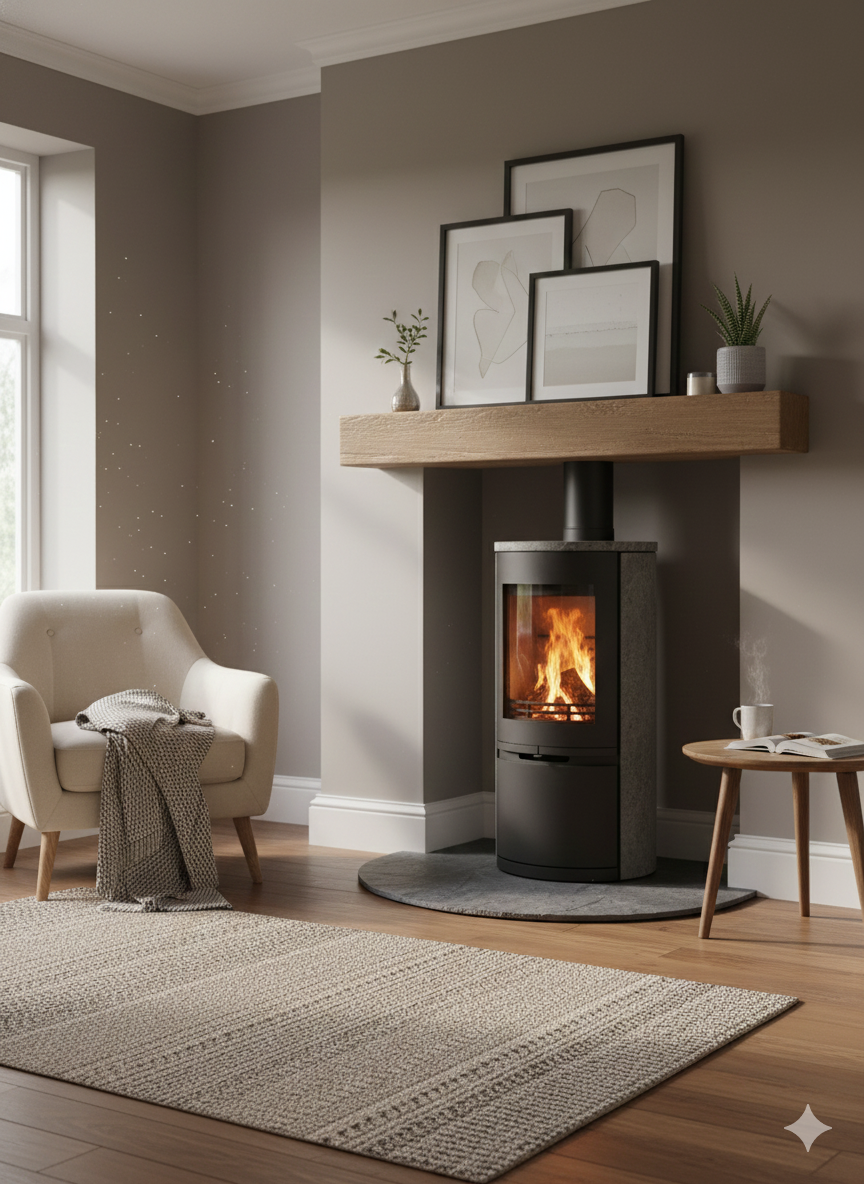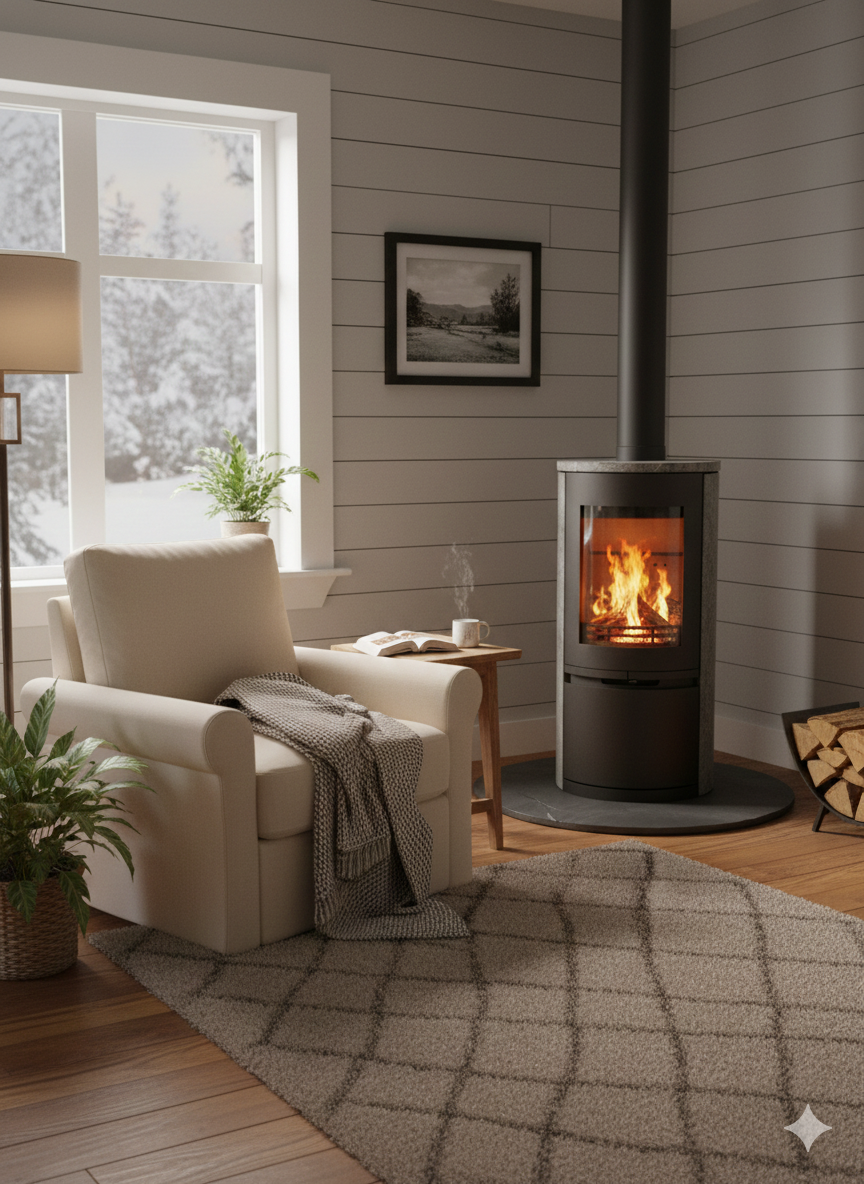 火が落ちた後も穏やかな余熱が続く暖房体として設計されています。