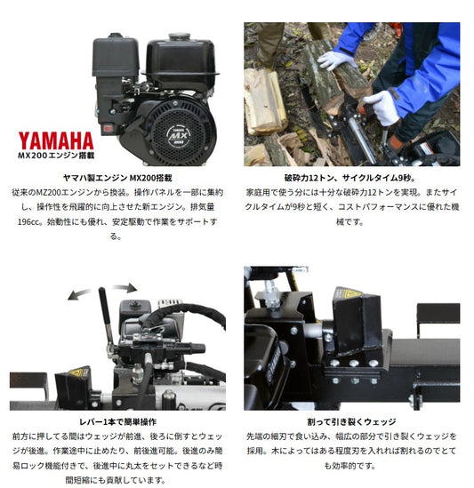 PLOW製20トン 高速デュアルシステム エンジン薪割り機 GLS20B 4分割カッター付き 送料込み